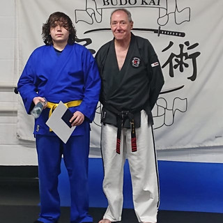 Lindsey and Jack were his uke (training partners) during the grading. Logan's green belt was presented to him by Shihan Peter Smith.