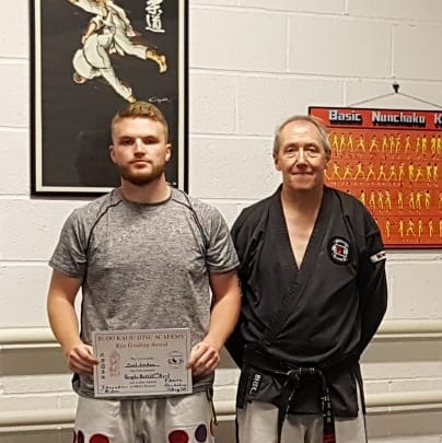 Logan received his 3rd Kyu (blue belt) certificates, Jack and Paul received their 2nd Kyu (purple belt) certificates.