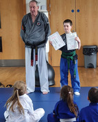 Thomas M and Frankie W received their completed Green Belt (4th Kyu) certificates from Shihan Peter Smith at today's (Saturday 16 October) session at Litherland Sports Park.