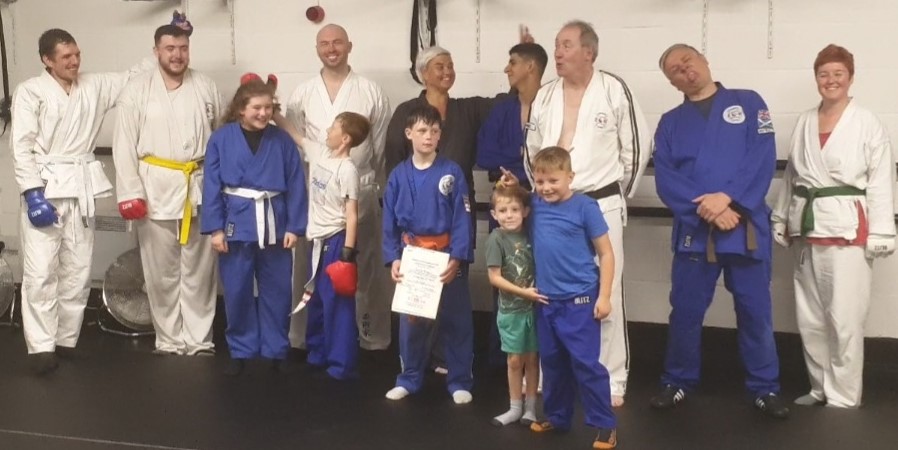 Frankie was given his completed certificates by Sensei Jane Saunders and Shihan Smith at the Bootle Dojo.