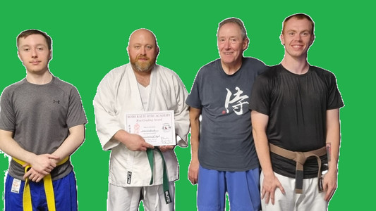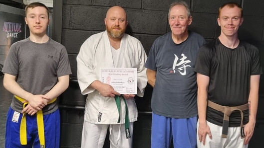 John was presented with his completed Green belt (4th Kyu) certificates on Wednesday 13th August.