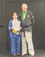 It was a difficult decision this month, so the club has decided to award two Student Of The Month awards for September 2023. The first to receive their certificate is Ella. Ella was presented with the award at the junior class today (Sunday 15th October) in the Bootle Dojo. The presentation was made by Shihan Peter Smith.