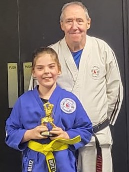 Shihan Peter Smith was the examiner and presented the Junior Warrior Awards to Taleen, Hussain and Hassan. Ella received the 2023 Student Of the Year trophy.