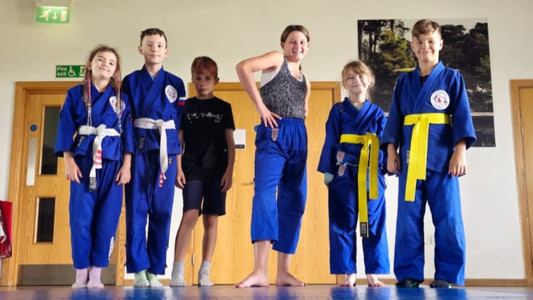 Well done Eva and Thomas O'T. Sempai Chris Shalliker presented Eva and Thomas with their Yellow Belt (6th Kyu) certificates and their yellow obi (belt). The presentations were made at Litherland Sports Park on Saturday 2nd September.